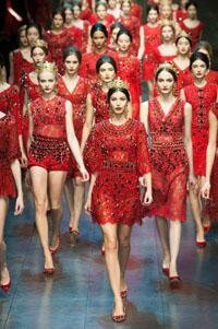 Dolce&Gabbana поразила своих поклонниц коллекцией выполненной в византийском стиле. Роскошные вышивки, аппликации и принты в стиле мозаики, массивные украшения, короны и тиары - все это превратило моделей в византийских принцесс.