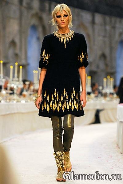 Короткое черное платье Chanel с золотой вышивкой: Paris-Bombay 2012