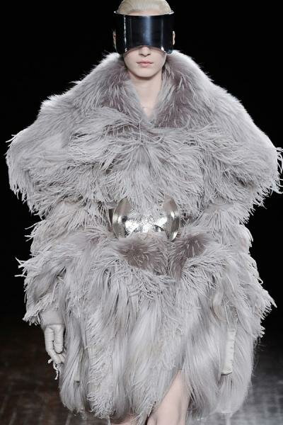 Серая шуба от Alexander McQueen. Показ мод зима 2012 / 2013