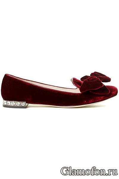 Вишневые балетки с бантом осень 2012 - зима 2013 Miu Miu