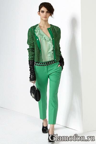 Diane Von Furstenberg стильный образ с жакетом и зелеными брюками осень 2012