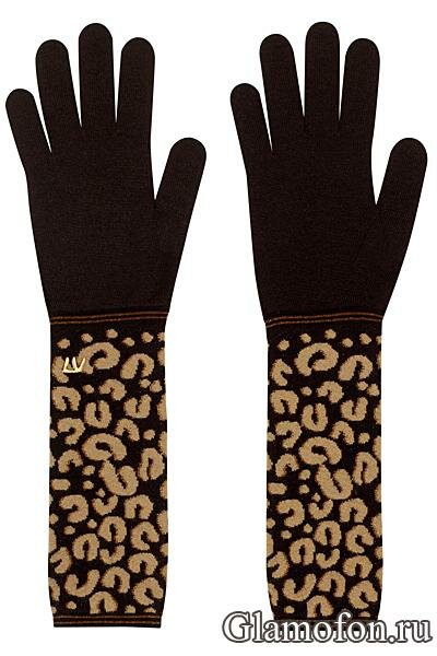 Модные вязаные перчатки по локоть, с леопардовым узором. Луи Витон осень-зима 2012 / 2013