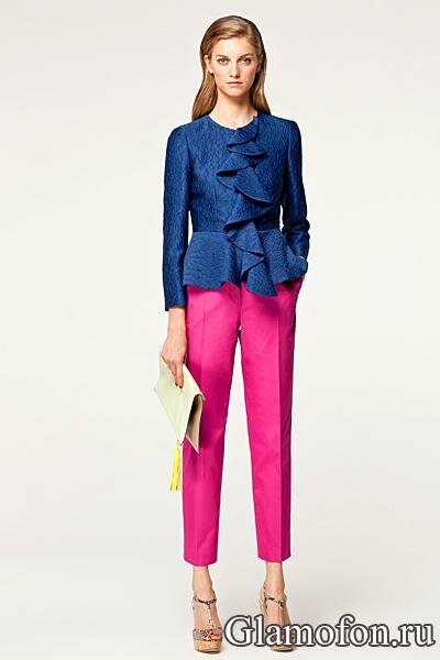 Яркий сет одежды с розовыми брюками и синим верхом Carolina Herrera весна лето 2013
