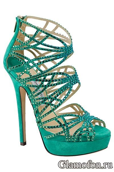 Модные бирюзовые босоножки со стразами лето 2013 Jimmy Choo