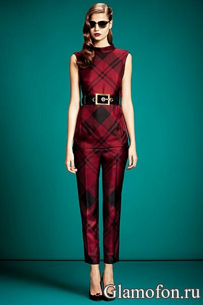 Узкие жеские брюки в клетку из коллекции Гуччи осень - зима 2013 / 2014 . Модна ли клетчатая ткань в 2013 году? однозначно - да!