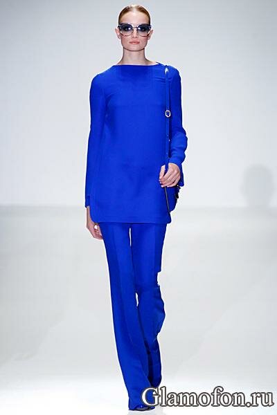 Летняя коллекция женской одежды Гуччи 2013, фото сета одежды с синими брюками.