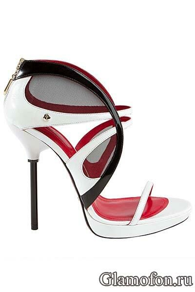 Красивая модель белых босоножек с черной отделкой из последней коллекции 2013 Cesare Paciotti. Фото каталог