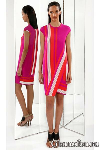 Модное яркое платье в розовом и красном цветах с белой отделкой. Каталог одежды Ohne Titel 2013.