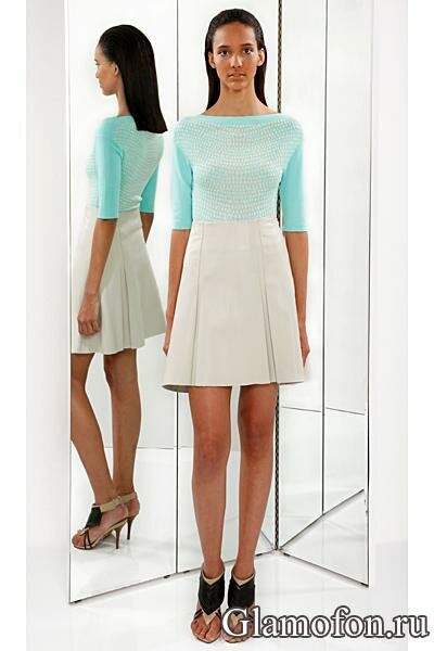 Модное голубое с белым платье из коллекции весна - лето 2013. Каталог