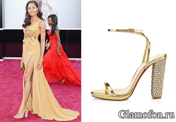 Золотые босоножки Christian Louboutin с каблуком в кристаллах 2013