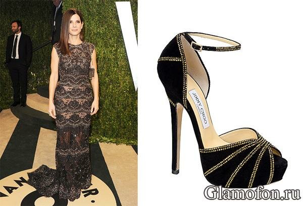 Сандра Баллок в черном кружевном платье Elie Saab Couture и обуви Джимми Чу