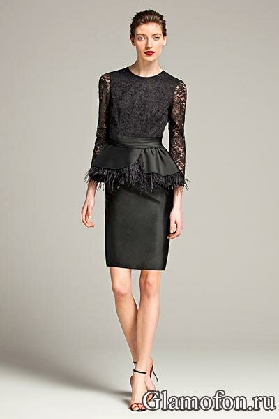 Черный вечерний костюм с юбкой и кружевной блузой с баской Carolina Herrera 2013 - 2014