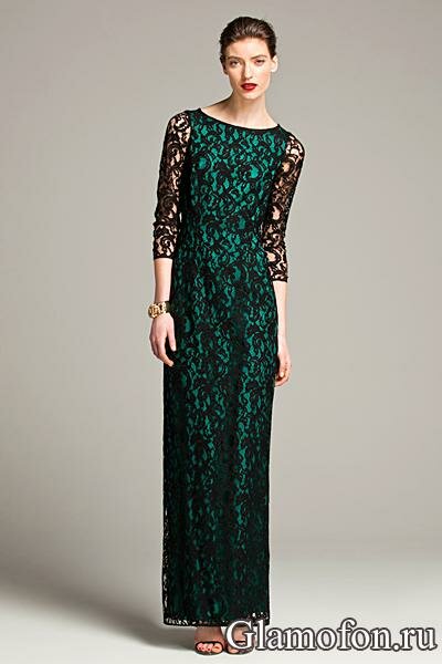 Длинное кружевное зеленое платье Carolina Herrera осень зима 2013 2014